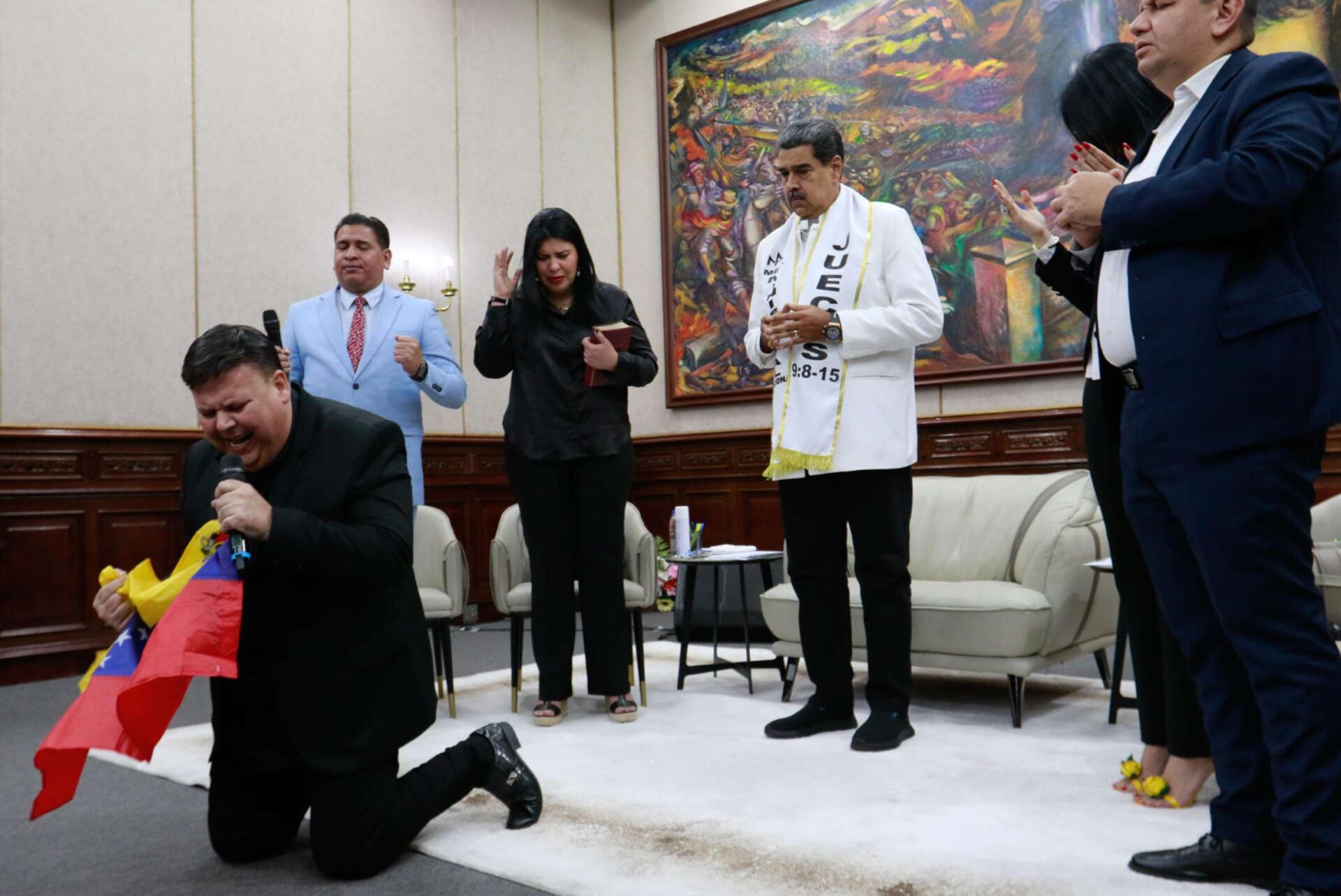 Após sua morte, Chávez foi popularmente santificado, com a criação de uma capela dedicada a ele e a incorporação de símbolos religiosos católicos e elementos do chavismo nas práticas devocionais. Há murais, imagens dos “olhos de Chávez” e orações adaptadas que exemplificam essa fusão entre o político e o sagrado, consolidando sua figura como entidade espiritual e símbolo moral da revolução. Essa sacralização popular, embora não reconhecida oficialmente pela Igreja Católica, reforça a continuidade do carisma e da autoridade política do líder falecido.